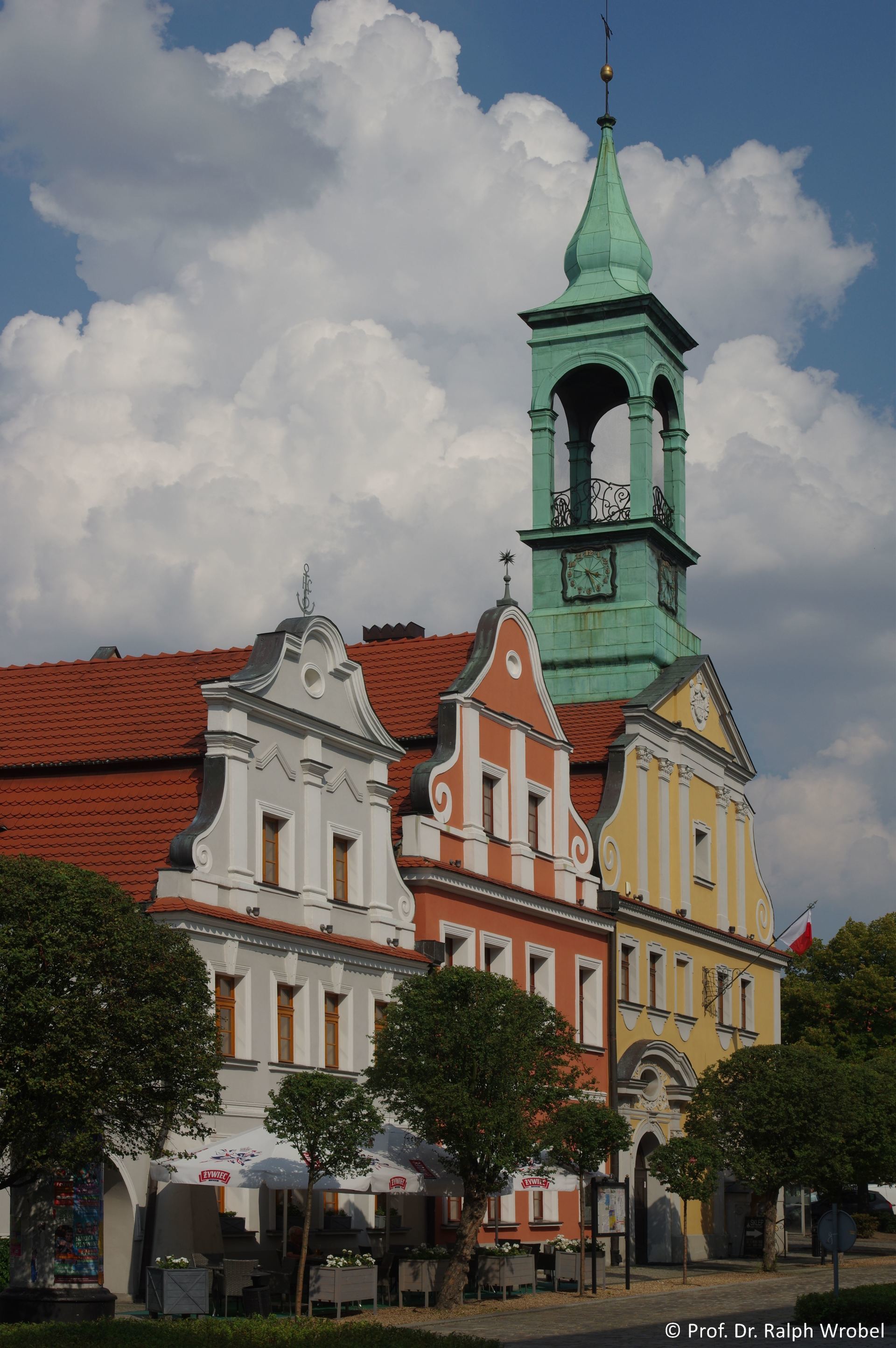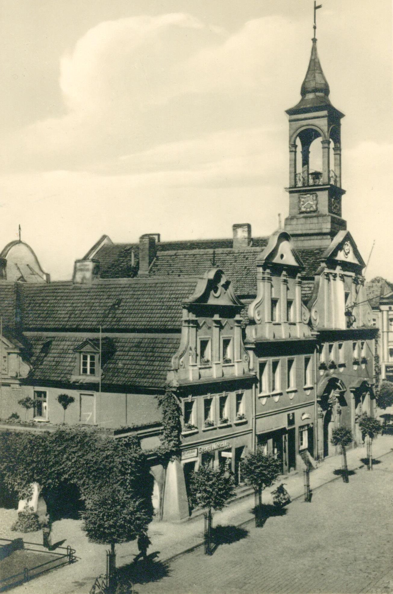 Das Rathaus wurde zusammen mit vier Giebelhäusern 1926 rekonstruiert. In einem anliegenden barocken Haus befindet sich ein Giebel-Relief mit ehem. Ringansicht.