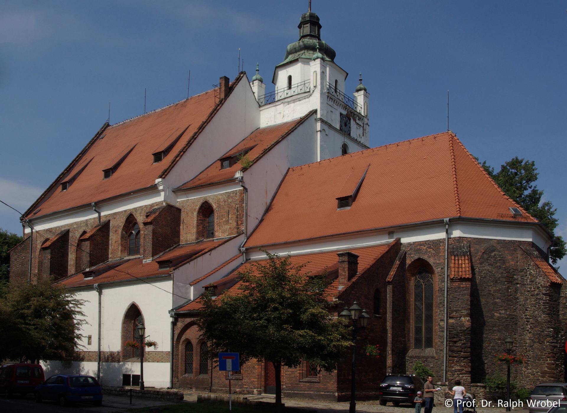 Die zweischiffige gotische Hallenkirche wurde im 14. Jahrhundert aus Ziegelsteinen erbaut. Seit 1527 ist sie evangelisch, nur unterbrochen zwischen 1700 und 1707. Bis 1547 stand die Kirche unter dem Patronat der Brieger Piastenherzöge. Nach einem Brand wurde der Innenraum zwischen 1743 und 1745 umgebaut, im 19. Jahrhundert zudem mehrfach renoviert. Er ist reich im Régence-Rokoko-Stil ausgestattet. Der quadratische Turm wurde 1754 errichtet und Ende des 18. Jahrhunderts aufgestockt.