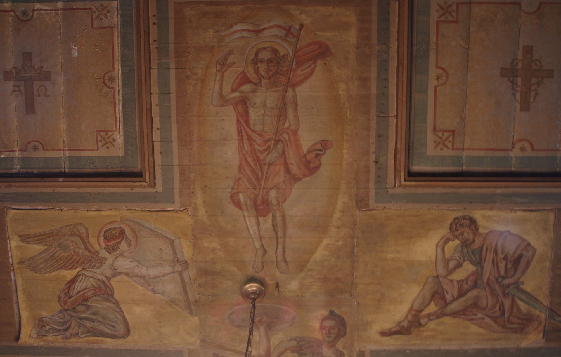 Die Schrotholzkirche wurde im Jahre 1759 mit zweijochigem Langhaus und gemauerter Sakristei errichtet. Der rechteckige Turm im Westen ist mit einem niedrigen Zeltdach mit Zwiebelhelm versehen.