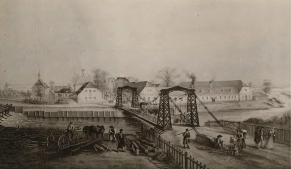 Eisenbrücke über die Malapane (Lithographie aus dem 19. Jahrhundert).
