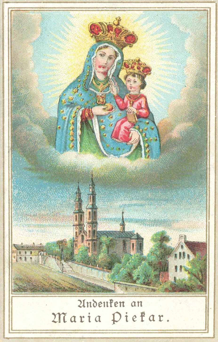 Die Wallfahrten zum Gnadenbild in Deutsch Piekar gehen auf das 17. Jahrhundert zurück, als die Pfarrei von den Jesuiten administriert wurde. Gemäß der Überlieferung fand Pfarrer Roczkowski 1659 „in einem Winkel seines hölzernen Gotteshauses“ ein Marienbild, das „durch seine Schönheit den Pfarrer, seine Gemeinde und die Jesuiten in Tarnowitz entzückte“. Moderne Untersuchungen gehen davon aus, dass das Bild vor 1480 gemalt wurde. Pfarrer Roczkowski gab dem Bild einen neuen Platz im Hochaltar und machte es auch in der Umgebung bekannt. Um das Bild entstand daher ein reger Wallfahrtsrummel. Infolge der Türkengefahr wurde das Bild 1682 für einige Zeit nach Oppeln in die Jesuitenkirche gebracht. 1697 legte der sächsische Kurfürst und neu gewählte König von Polen, Friedrich August, das katholische Glaubensbekenntnis vor der Madonna in Deutsch Piekar ab. Aus Furcht vor den Schweden wurde die Madonna 1702 endgültig nach Oppeln verlegt. Eine in Deutsch-Piekar angestrebte Rückgabe scheiterte am Widerstand der Jesuiten. Deshalb befindet sich heute auch nur eine relativ moderne Kopie des Originalbildes (17. Jahrhundert) in Deutsch Piekar.