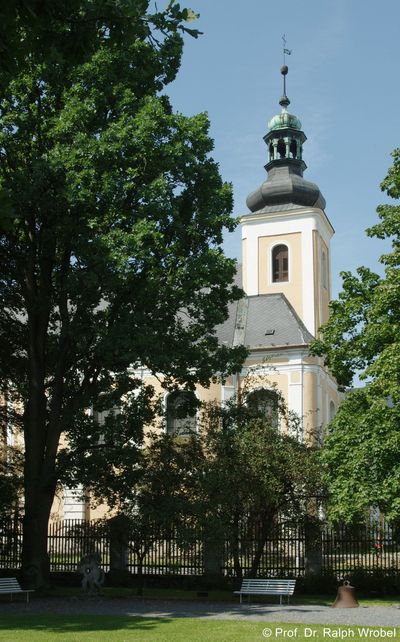 Die katholische Pfarrkirche Mariae Himmelfahrt stammt noch aus dem Mittelalter. Zur Zeit der reformation war sie zeitweilig protestantisch. An ihrer südlichen Seite befinden sich die Grüfte der Familie von Würben. In der Kreuzkapelle liegt der Hochmeister Johann Caspar von Ampringen begraben.