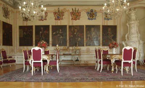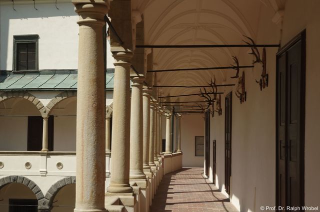 Seit dem Jahr 1960 ist das Schloss Museum. Im Erdgeschoss befinden sich eine Kapelle sowie die Überreste der Pferdeställe. Die Säle im ersten Stock sind mit wertvollen Möbeln aus dem Ende des 18. und dem Beginn des 19. Jahrhunderts ausgestattet. Interessant ist hier auch die Sammlung holländischer und deutscher Gemälde aus dem 16. bis 18. Jahrhundert, die Jagdwaffenkammer sowie die 20.000 Bände umfassende Schlossbibliothek. (unten)