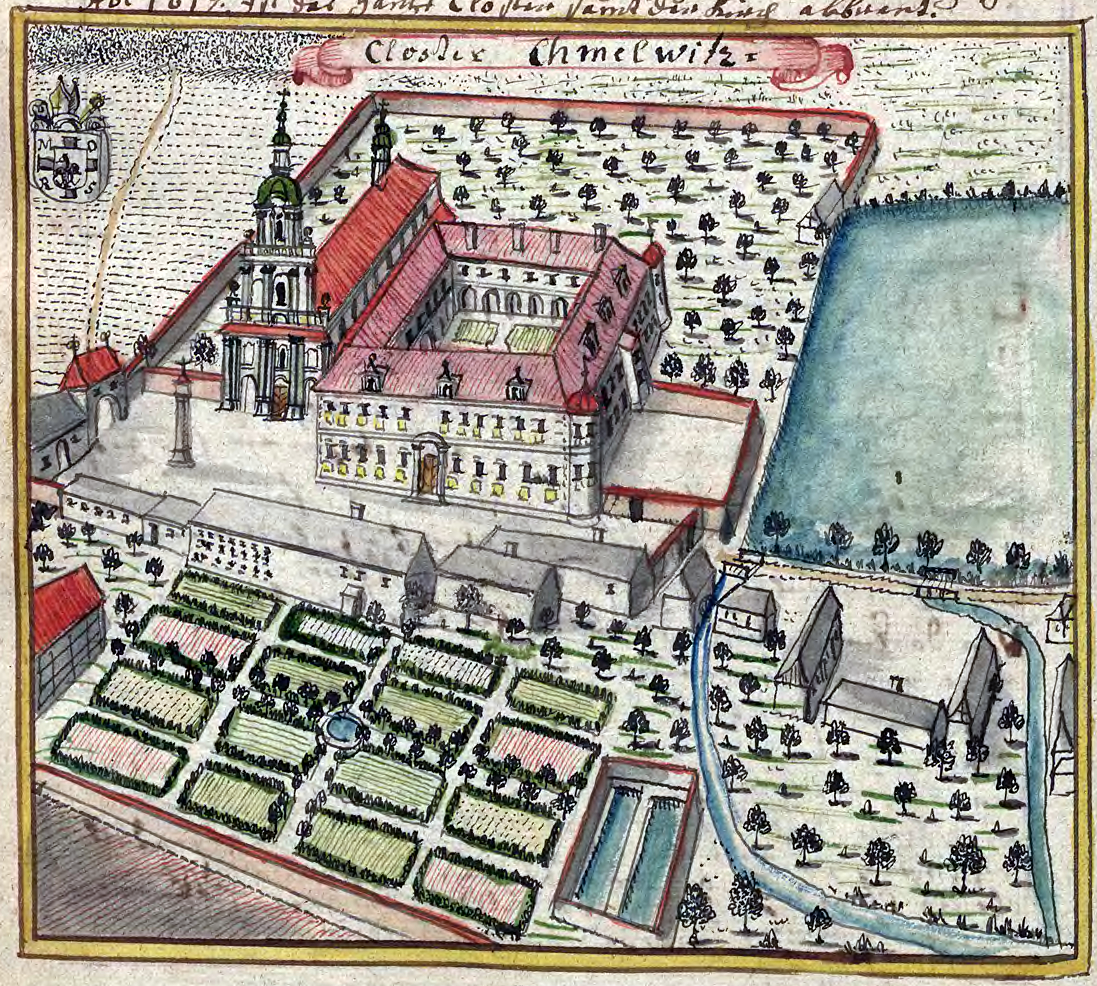 Ansicht des Klosters Himmelwitz von F.B. Werner um 1750.