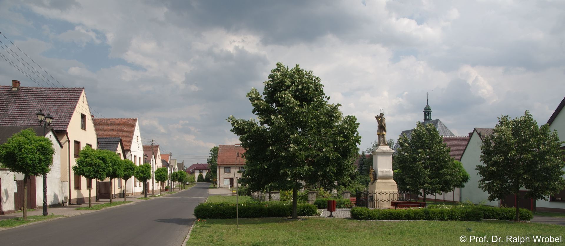 Neben dem Kloster liegt der großzügige Anger des Dorfes Himmelwitz mit einer Rokoko-Säule des hl. Johannes Nepomuk von 1765. Die durch Mauern mit Einfahrten verbundenen Bauernhöfe am Anger sind zumeist aus dem 19. Jahrhundert und stehen traditionell giebelständig zur Straße. Dahinter befindet sich die ehem. Pfarrkirche des Ortes aus dem 15. Jahrhundert. (Im Bild hinten rechts.) Seit der Säkularisation 1810 wird sie als Begräbniskirche genutzt und ist mit dem Friedhof von Himmelwitz umgeben.
