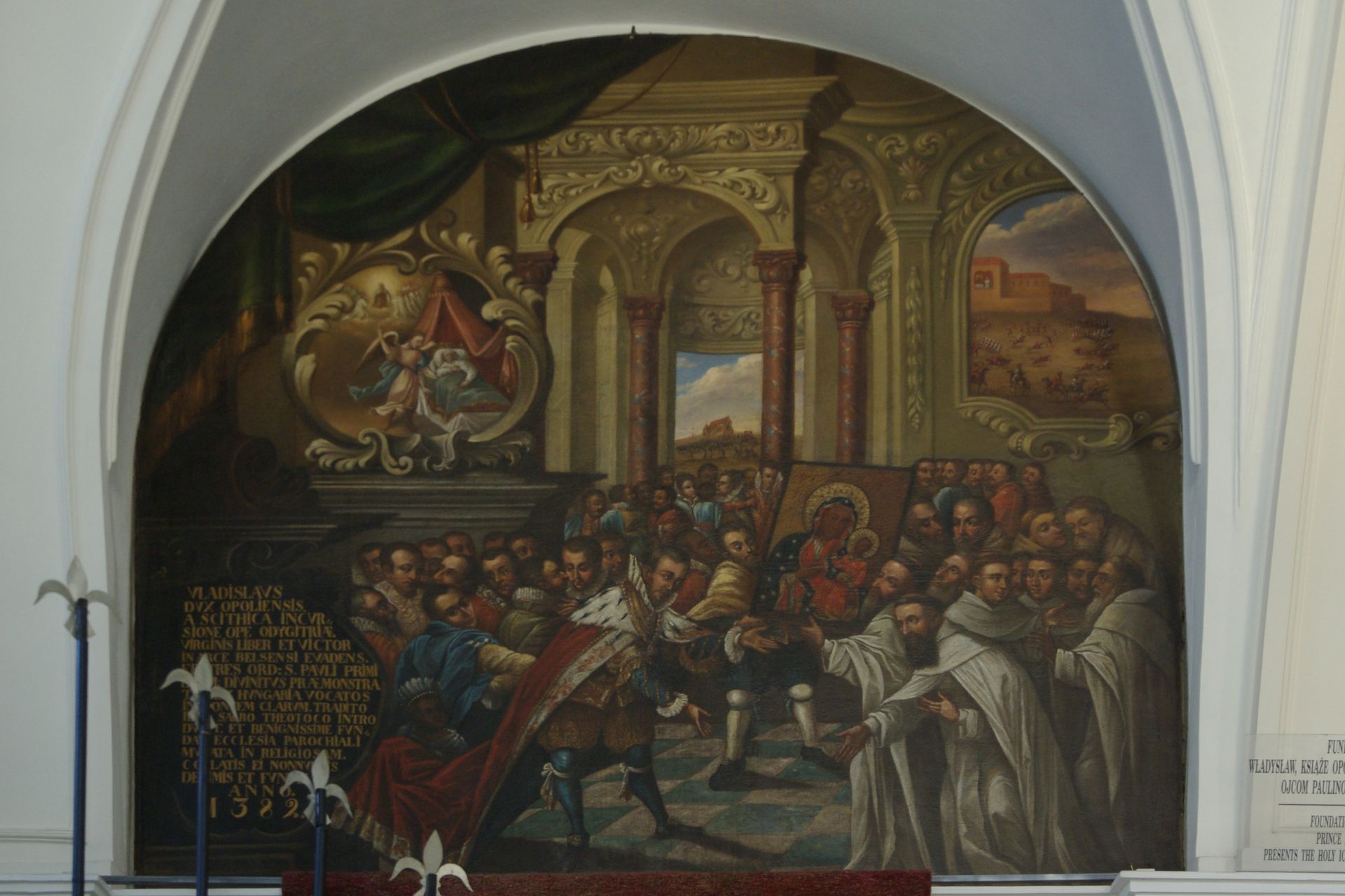 Wladislaus II. von Oppeln stiftet 1382 das Paulinerkloster in Tschenstochau, Fresko in der Klosterkirche von Tschenstochau.