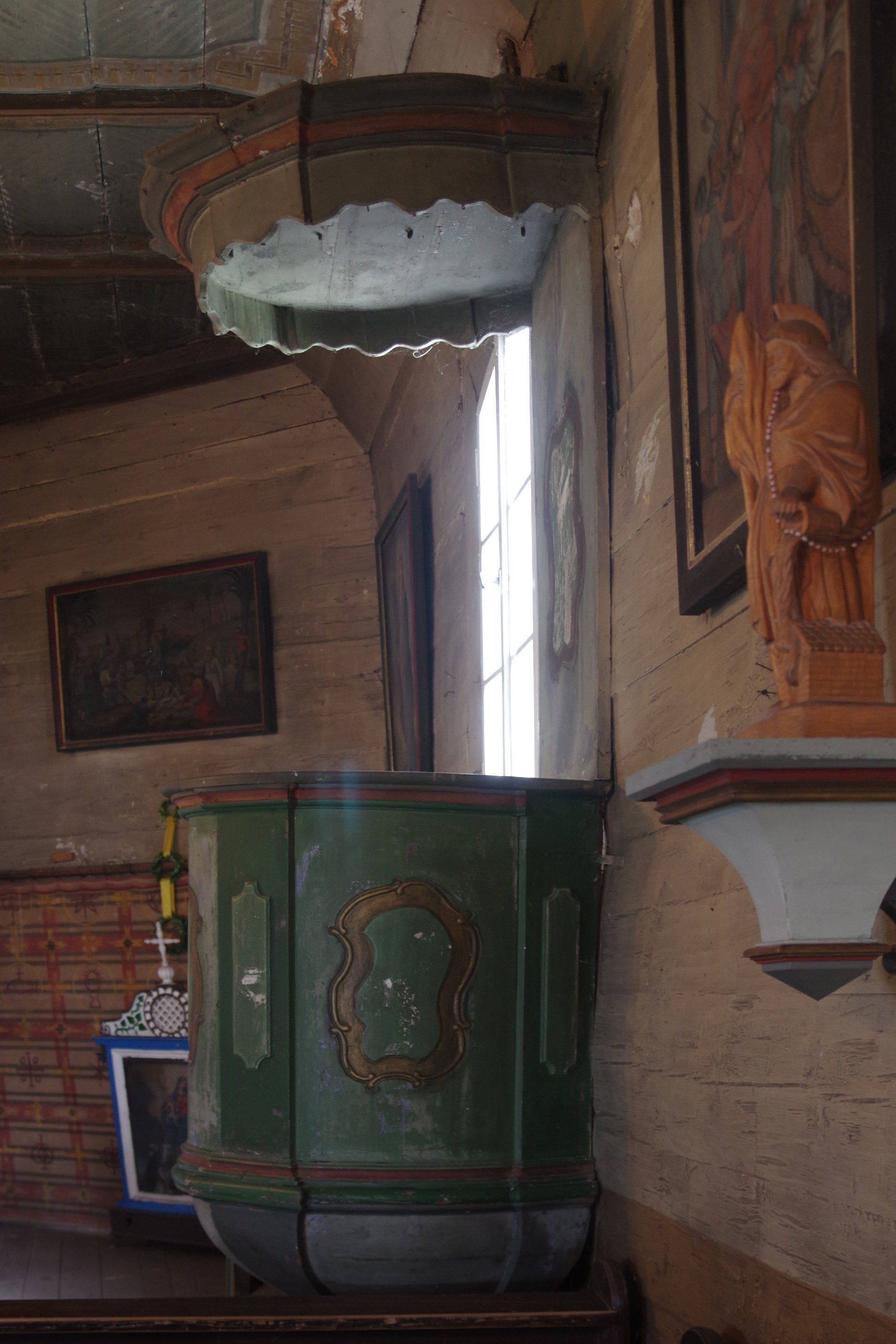 Im Inneren zieren die Kirche eine neue Flachdecke, eine Rokoko-Kanzel aus der 2. Hälfte des 18. Jahrhunderts sowie ein hölzerner Hauptaltar.