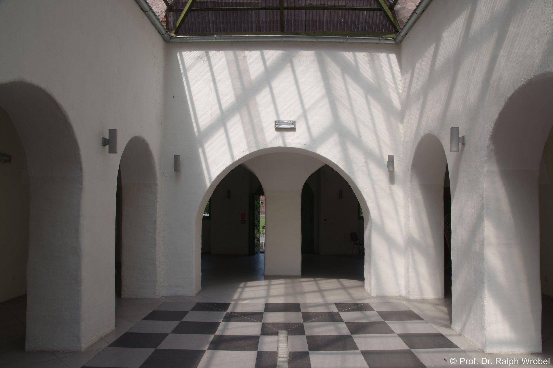 Renovierter Innenhof mit Glasdach.