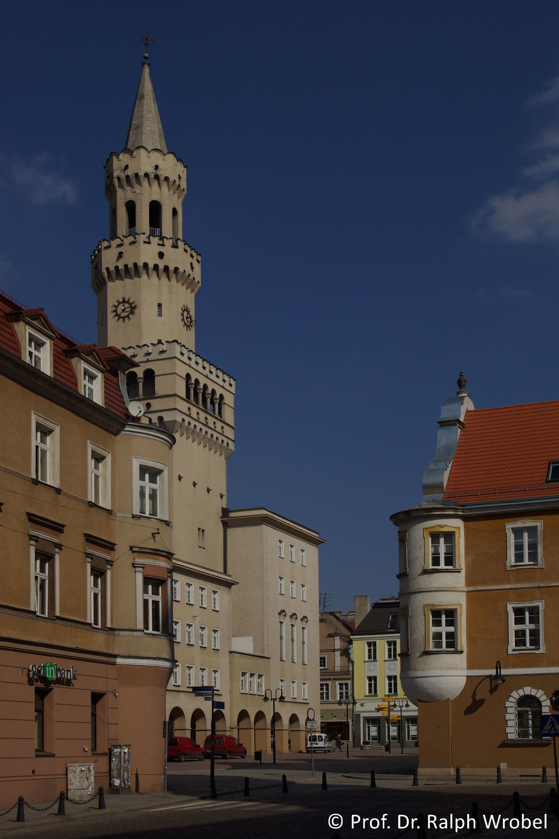 Seit 1202 gehörte Oppeln zum schlesischen Teilherzogtum Oppeln-Ratibor. Im Jahre 1217 werden hier erstmalig „hospites“, d.h. Gäste, vermutlich erste deutsche Siedler, urkundlich genannt, denen Herzog Kasimir (1211 – 1229) die Schenken des Marktes und verschiedene Freiheitsrechte verlieh. Stadtpfarre wurde die 1223 erstmals belegte Kreuzkirche, die bereits vor 1239 zu einem Kollegiatstift ausgebaut wurde. Nach den Verwüstungen des Mongolensturmes 1241 wurde die Stadt erneut im Schachbrettmuster nach deutschem Recht mit dem Ring in der Mitte gegründet. Zu dieser Zeit entstand auch die Franziskanerkirche zur Heiligen Dreifaltigkeit. Die alte Pfarrkirche St. Adalbert wurde 1295 den Dominikanern übergeben. Bis 1532 war die Stadt Residenz der Oppelner Piasten, die jedoch über ein wechselnd großes Herzogtum geboten. Zu dieser Zeit war die Stadt gemischtsprachig, polnisch-deutsch.