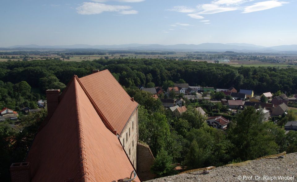 Blick vom Schlossdach auf das Altvatergebirge.
