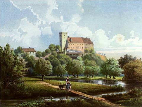 Schloss Ottmachau im 19. Jahrhundert (nach Duncker)