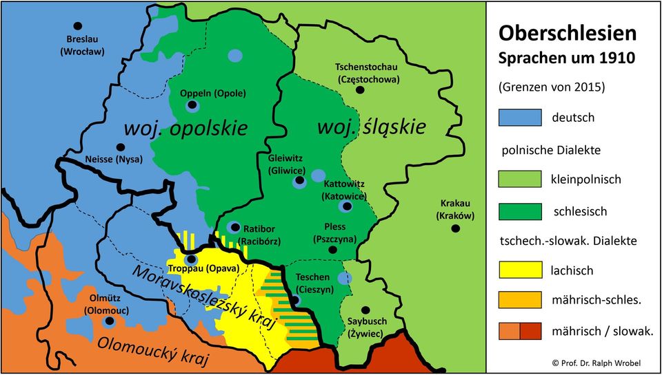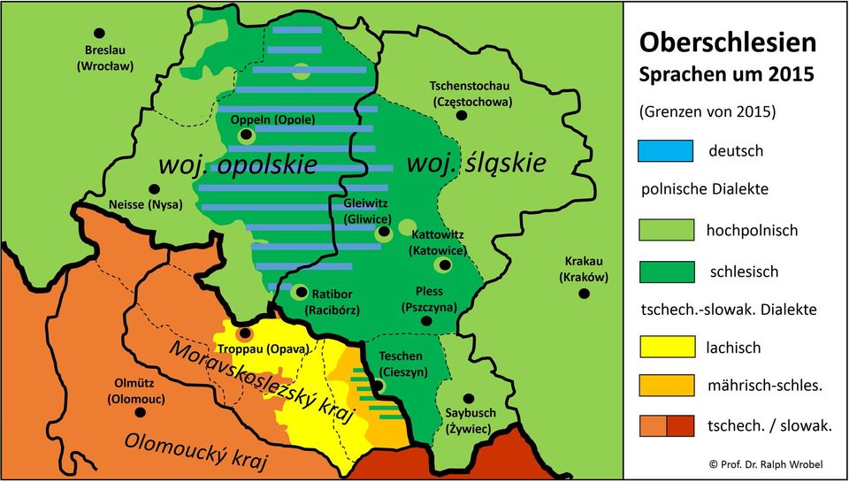 Das Schlesische wird bis heute weiter in der Oppelner Region als auch im östlich angrenzenden Teil Oberschlesiens wie auch im polnischen Teil des Teschener Landes gebraucht. Aufgrund des Assimilierungsdruckes der polnischen Hochsprache wird der Dialekt aber v.a in städtischen Siedlungen wie auch unter Gebildeten immer weniger gesprochen. Auch die kontinuierliche Abwanderung der Zweisprachigen nach Deutschland reduziert diese Sprachgruppe dauerhaft. Schlesisch konnte sich bis heute zudem nicht als Schriftsprache etablieren. Im zu Tschechien gehörigen westlichen Teschener Land wird dieser „polnische Dialekt“ auch immer weniger verwendet. Das Lachische – das von dem Literaten Ervín Goj (1905 – 1989) immerhin zur Literatursprache gemacht wurde – verschwindet ebenso langsam neben dem Hochtschechischen. Dennoch stellt Oberschlesien weiterhin eine durch zahlreiche unterschiedliche Dialekte und Sprachen gekennzeichnete Kulturlandschaft dar.