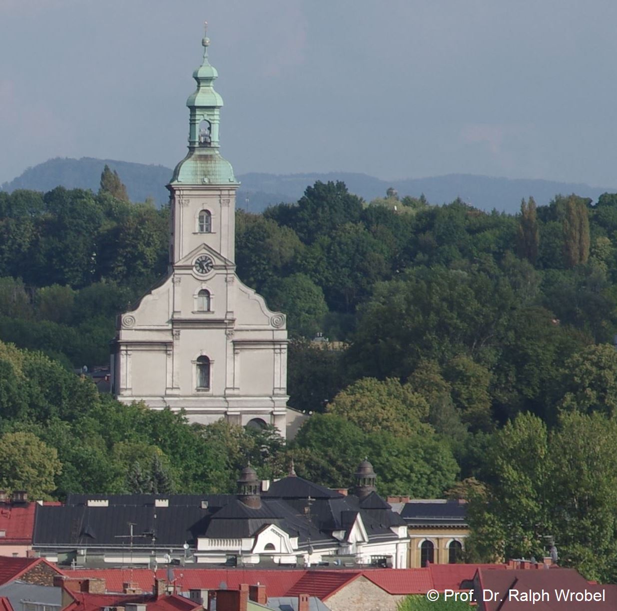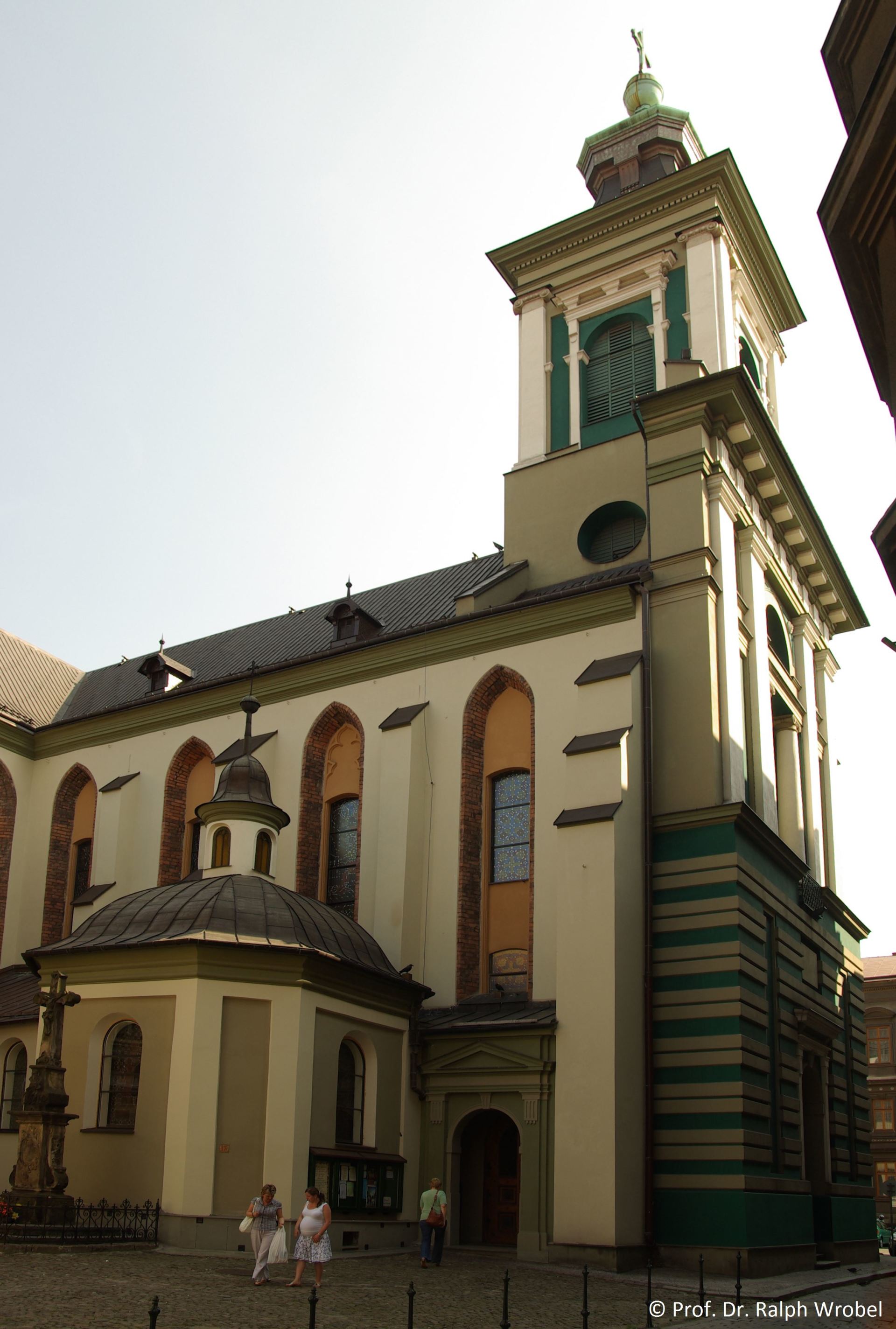 Die ehem. Dominikanerkirche wurde an Stelle eines Holzbaues in der 2. Hälfte des 13. Jahrhunderts neben dem Teschner Ring errichtet. Es handelt sich um eine Stiftung der Herzogin Euphemia, der Ehefrau Herzogs Wladislaus von Oppeln.