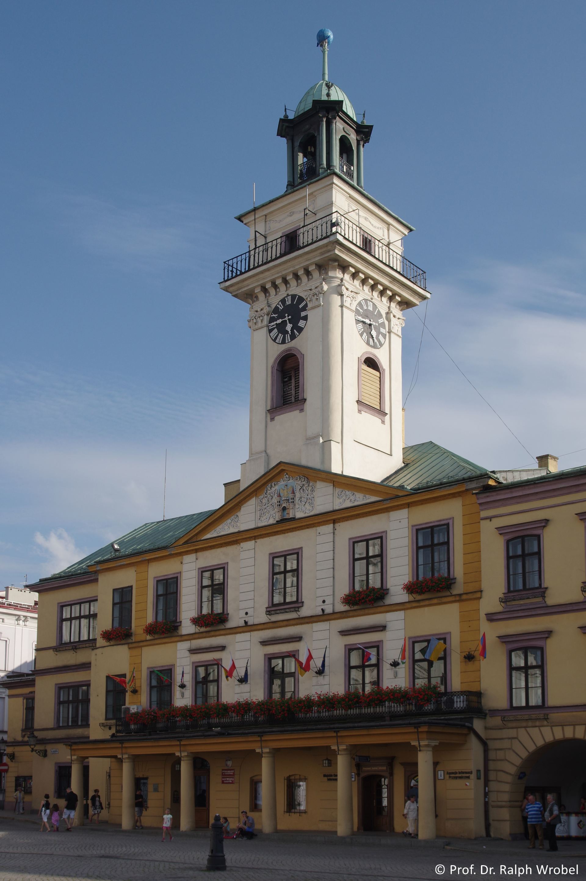 Das barock-klassizistische Rathaus am Ring wurde im 16. Jahrhundert an der Südseite des Teschener Ringes als Steinbau errichtet. 1726 wurde ein Fest- und Theatersaal angebaut. 1788 wurde das Gebäude teilweise zerstört und um 1800 im klassizistischen Stil wiederaufgebaut. Nach einem erneuten Brand erfolgte der Wiederaufbau ab 1844. Das heutige Gebäude hat ein Walmdach und einen dreigeschossigen Turm.