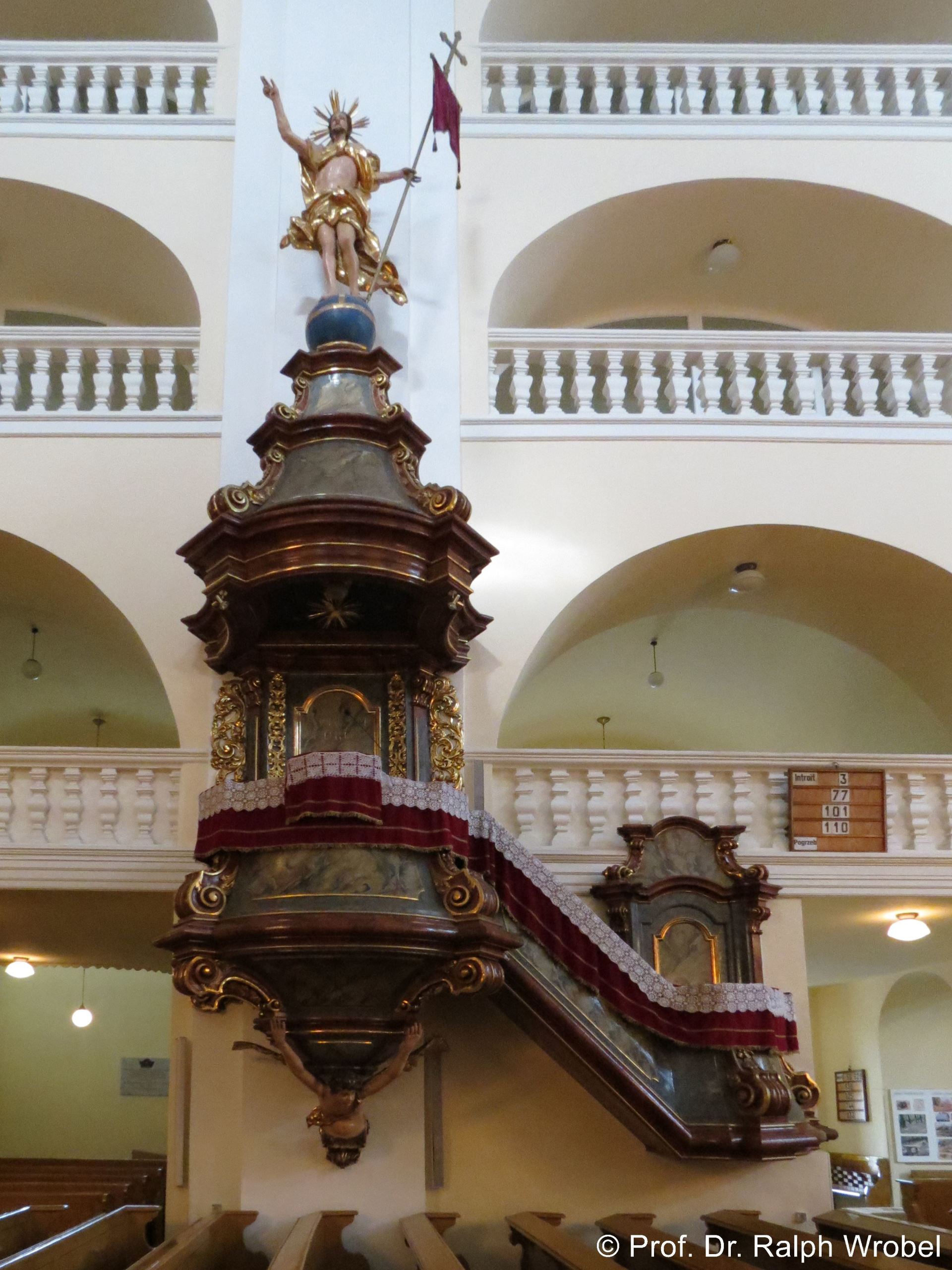 Die spätbarocke Kanzel in der Gnadenkirche.