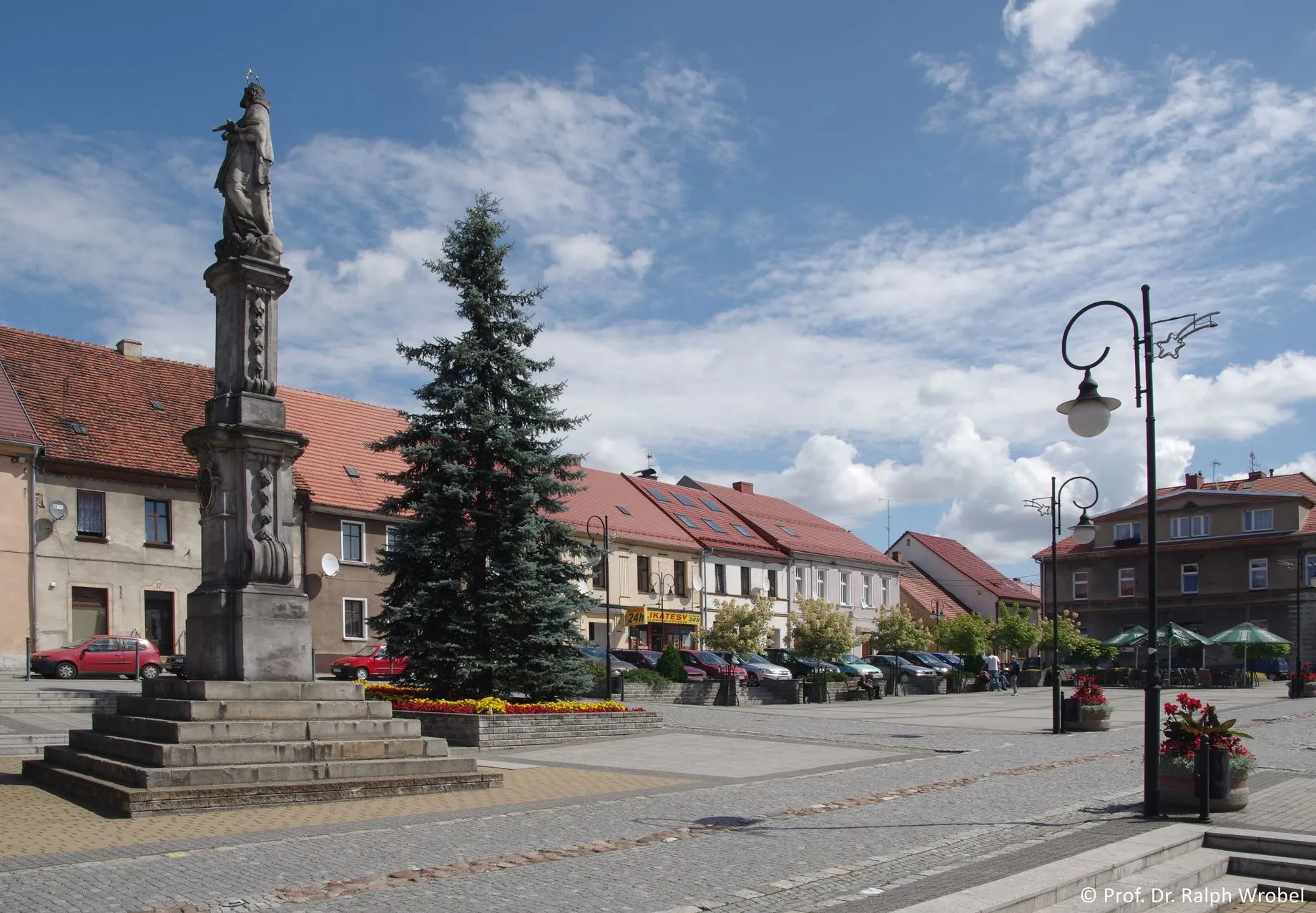 Die aus der Zeit um 1300 stammende Kleinstadt Tost ist eine kleine ovale Anlage mit schachbrettartigem Straßennetz und rechteckigem Ring. In dessen Südostecke befindet sich ein klassizistisches Rathaus von 1836 sowie eine schöne Nepomuksäule aus dem ersten Quartal des 18. Jahrhunderts.